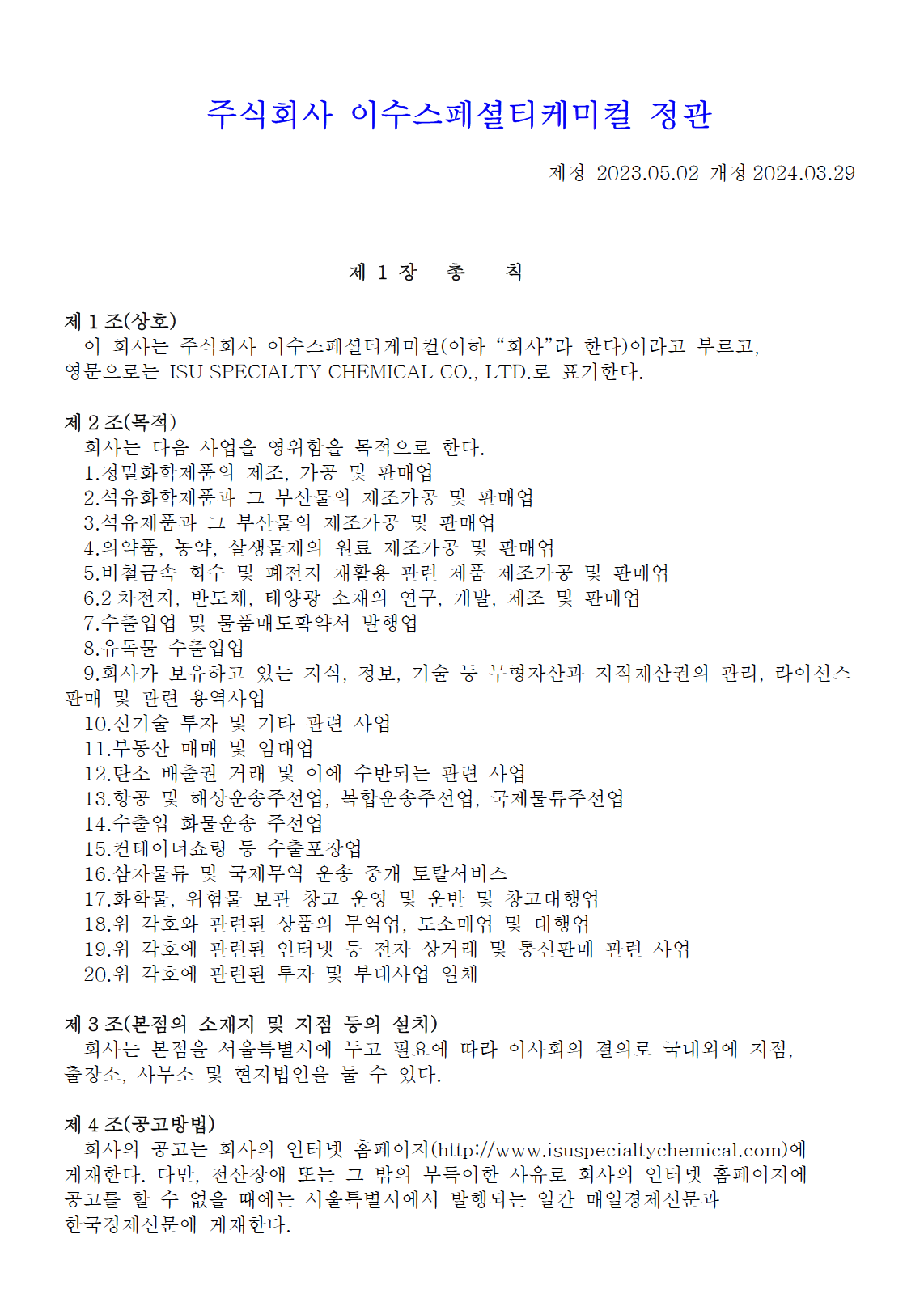 제 3기 정관